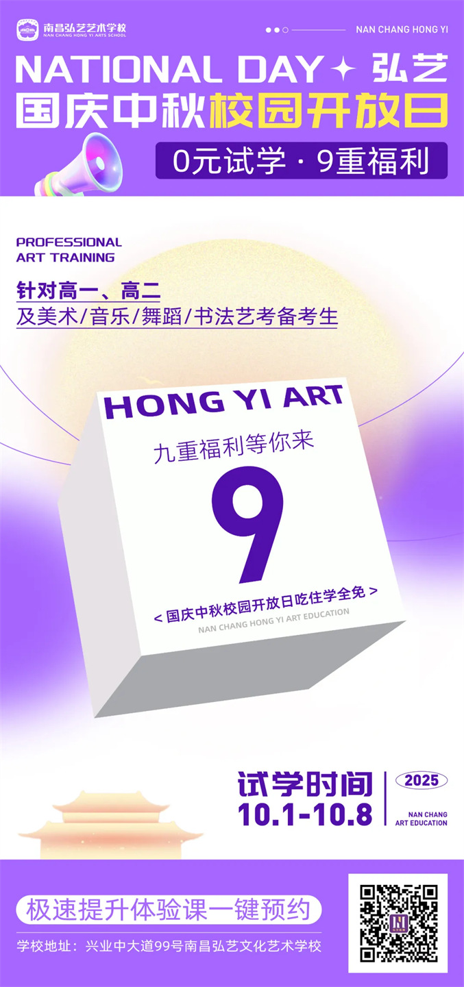 快扫码预约弘艺国庆&中秋免费试学日吧!!